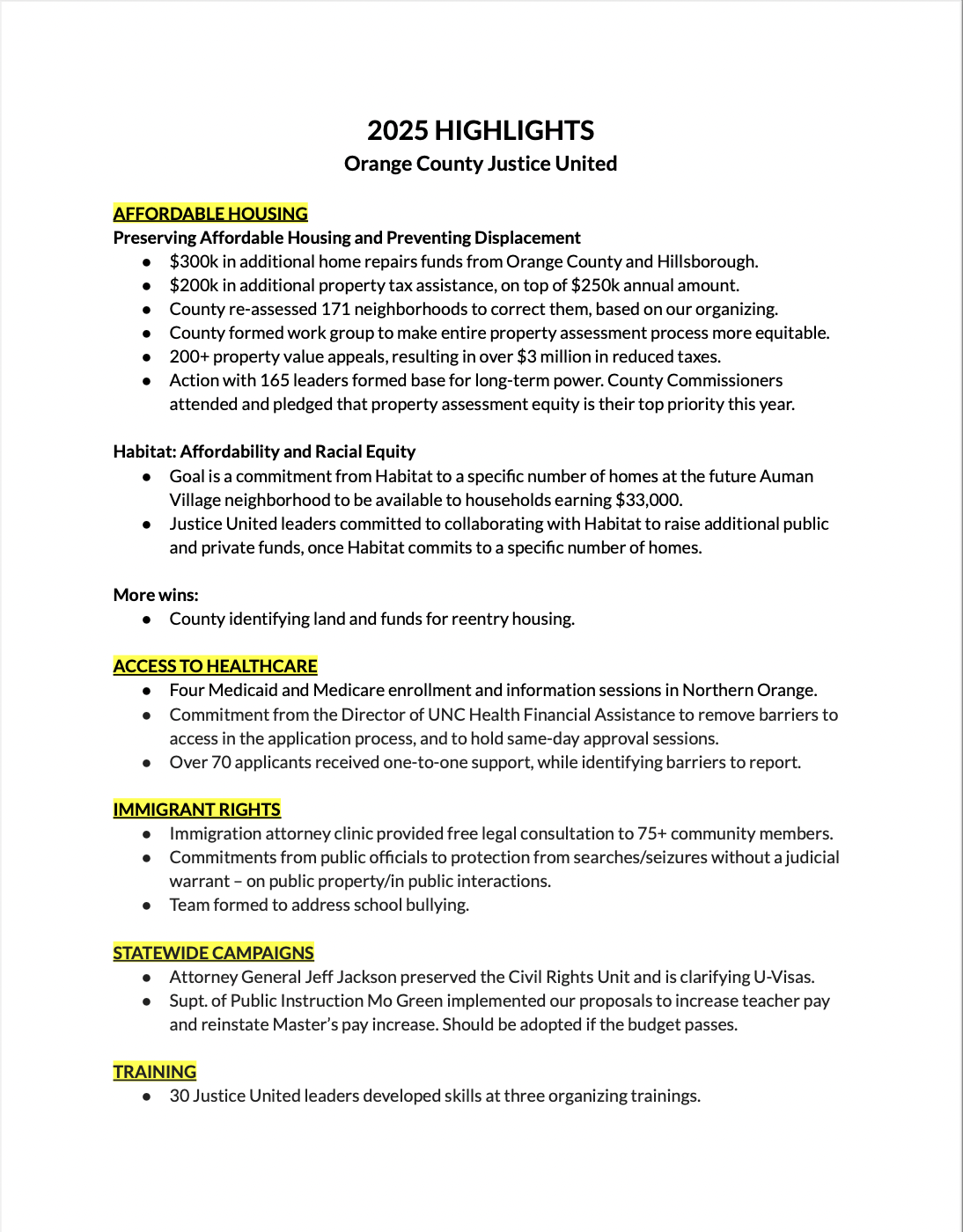 Find our initial list of highlights here. Check back soon for a full report with photos from a year of relationship-building and action!